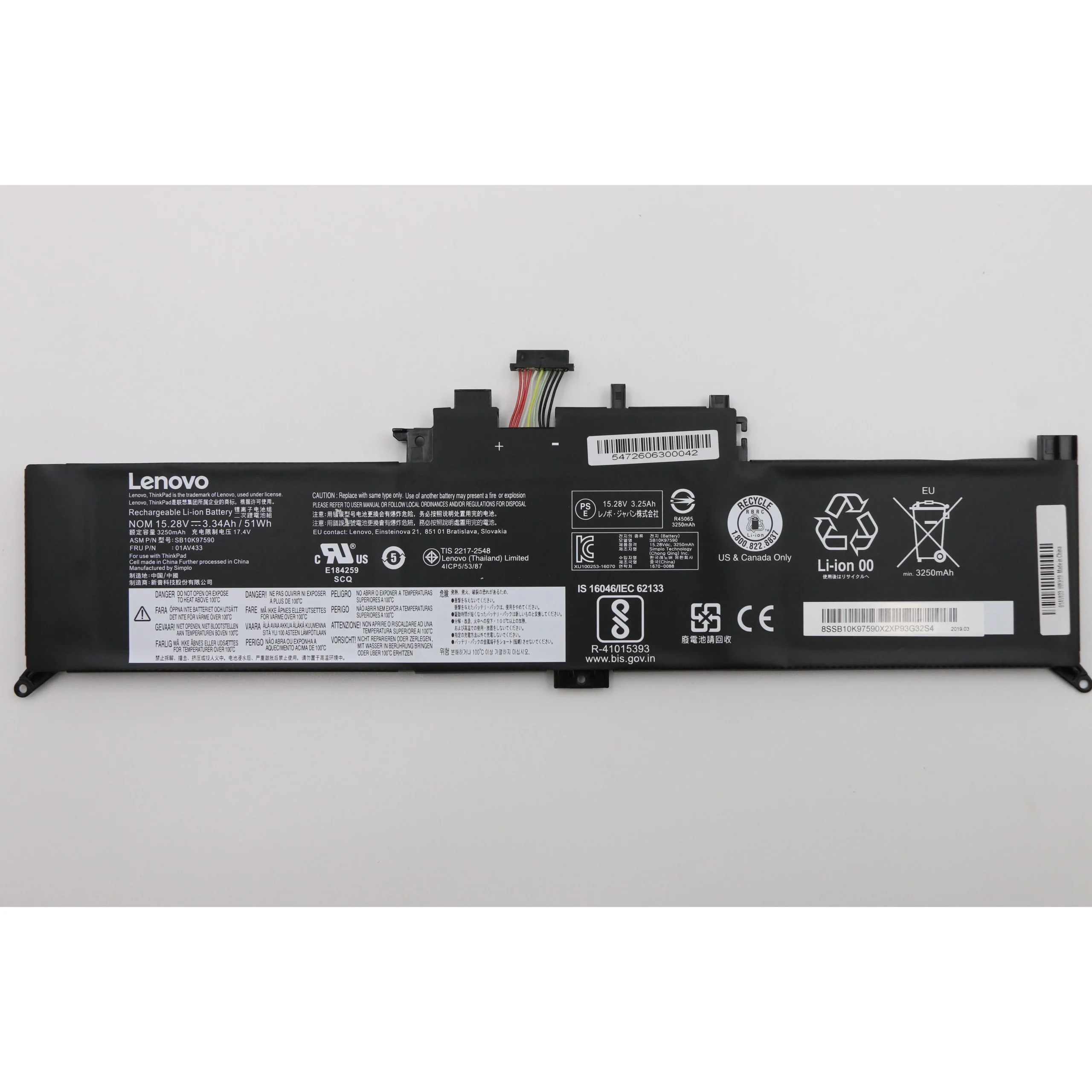Especificaciones Batería Original Lenovo 01AV433 51Wh 3250mAh.