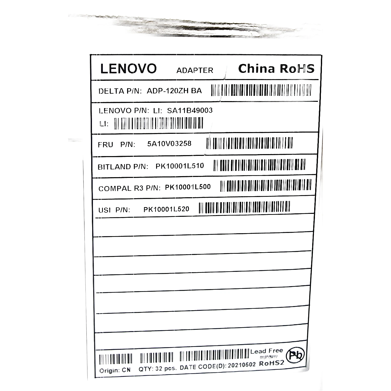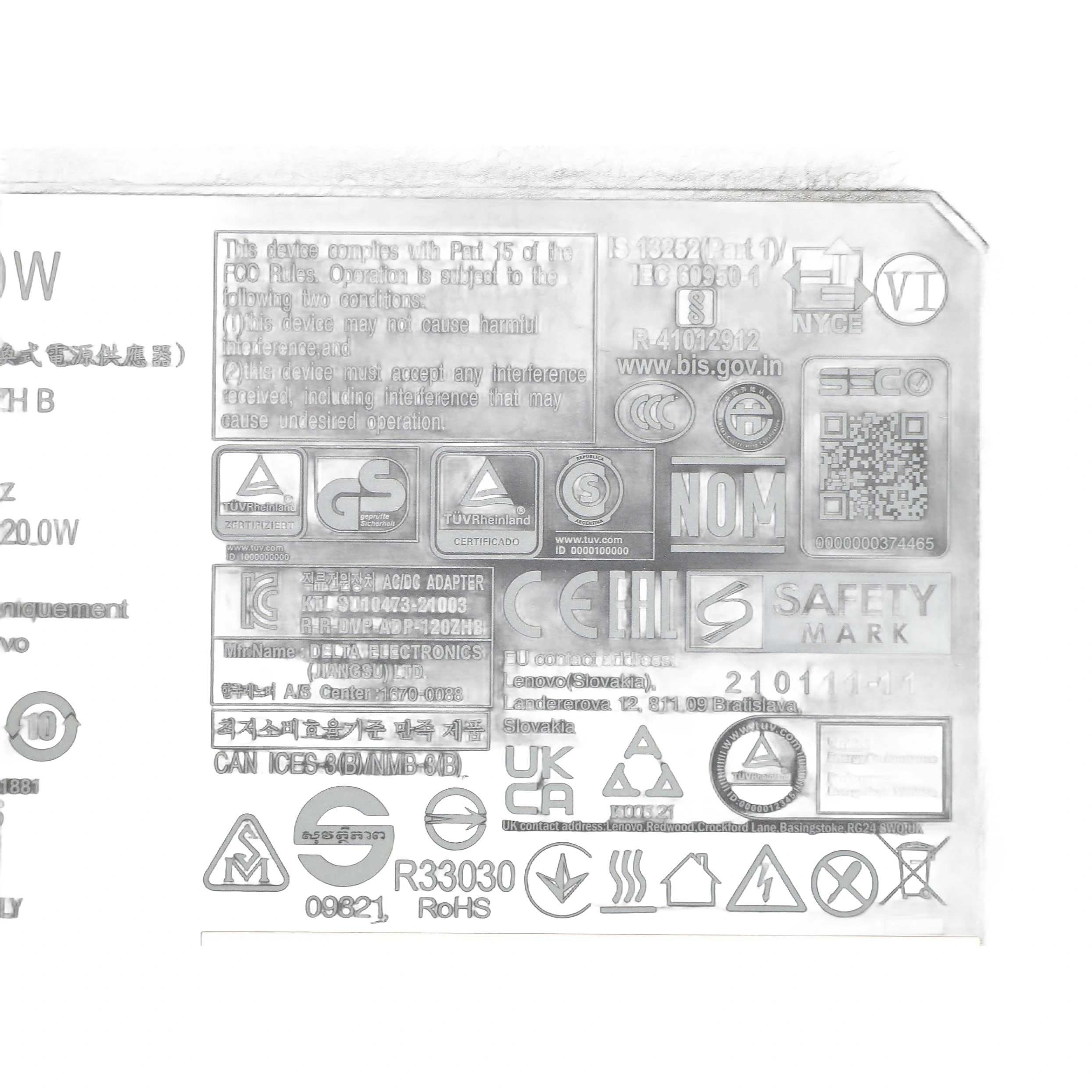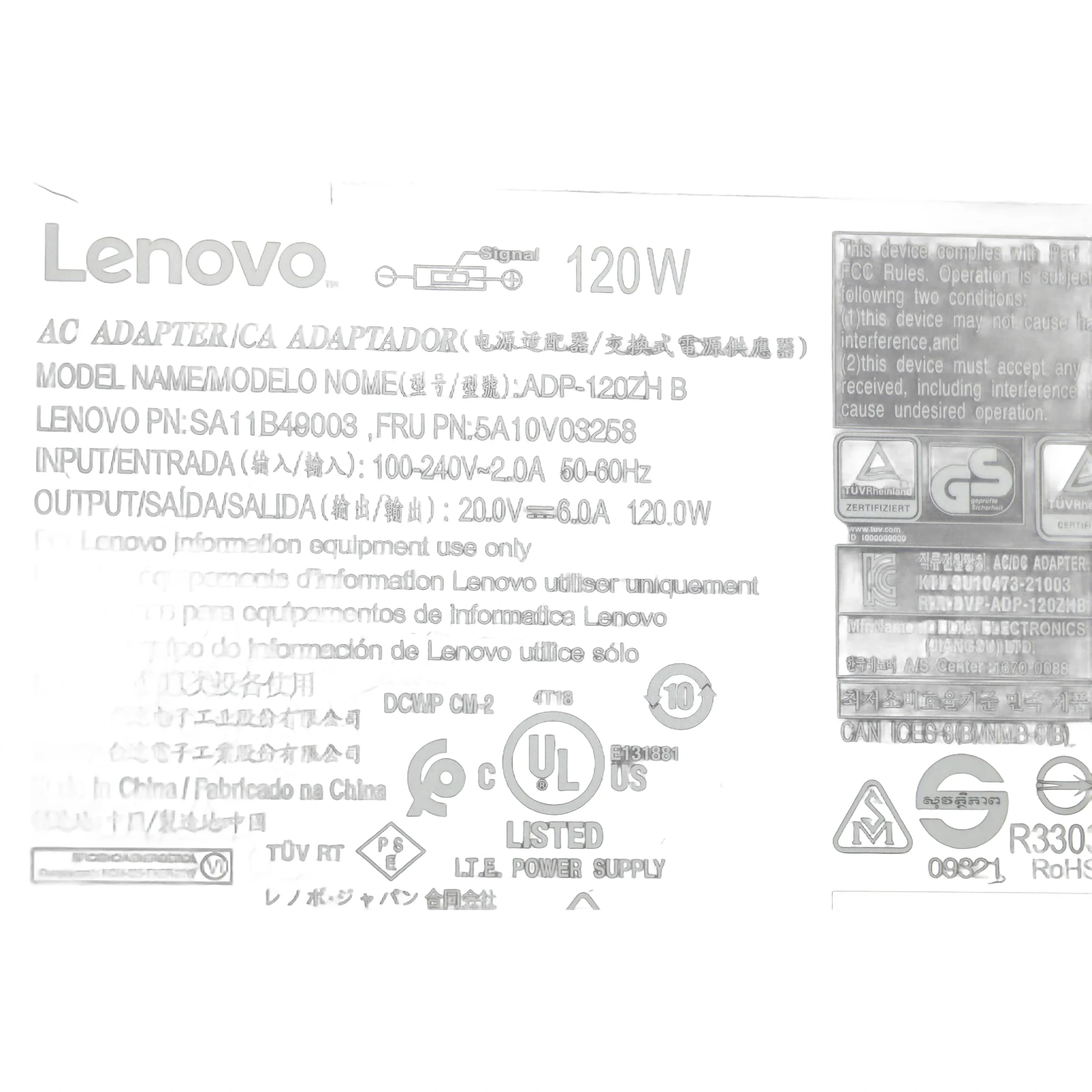Especificaciones Cargador Lenovo 120W Rectangular.