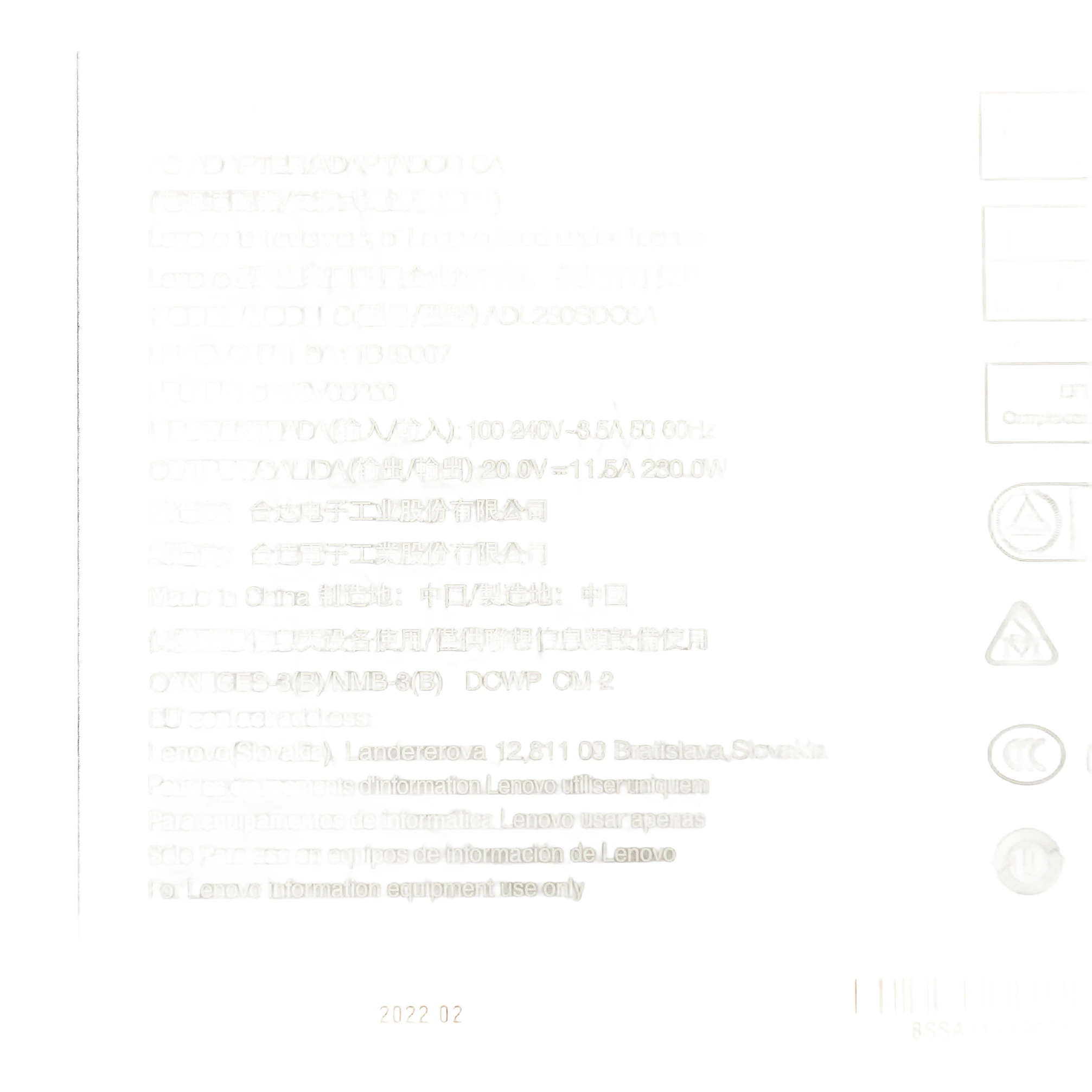 Especificaciones Cargador Lenovo 230W Rectangular.