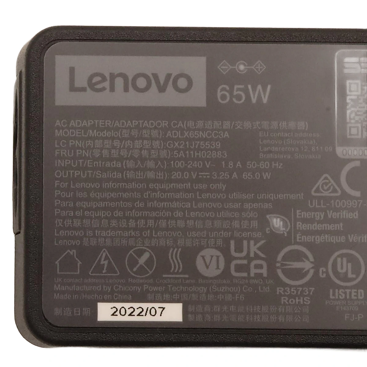 Especificaciones Cargador Lenovo 65W 4.0 x 1.7mm.