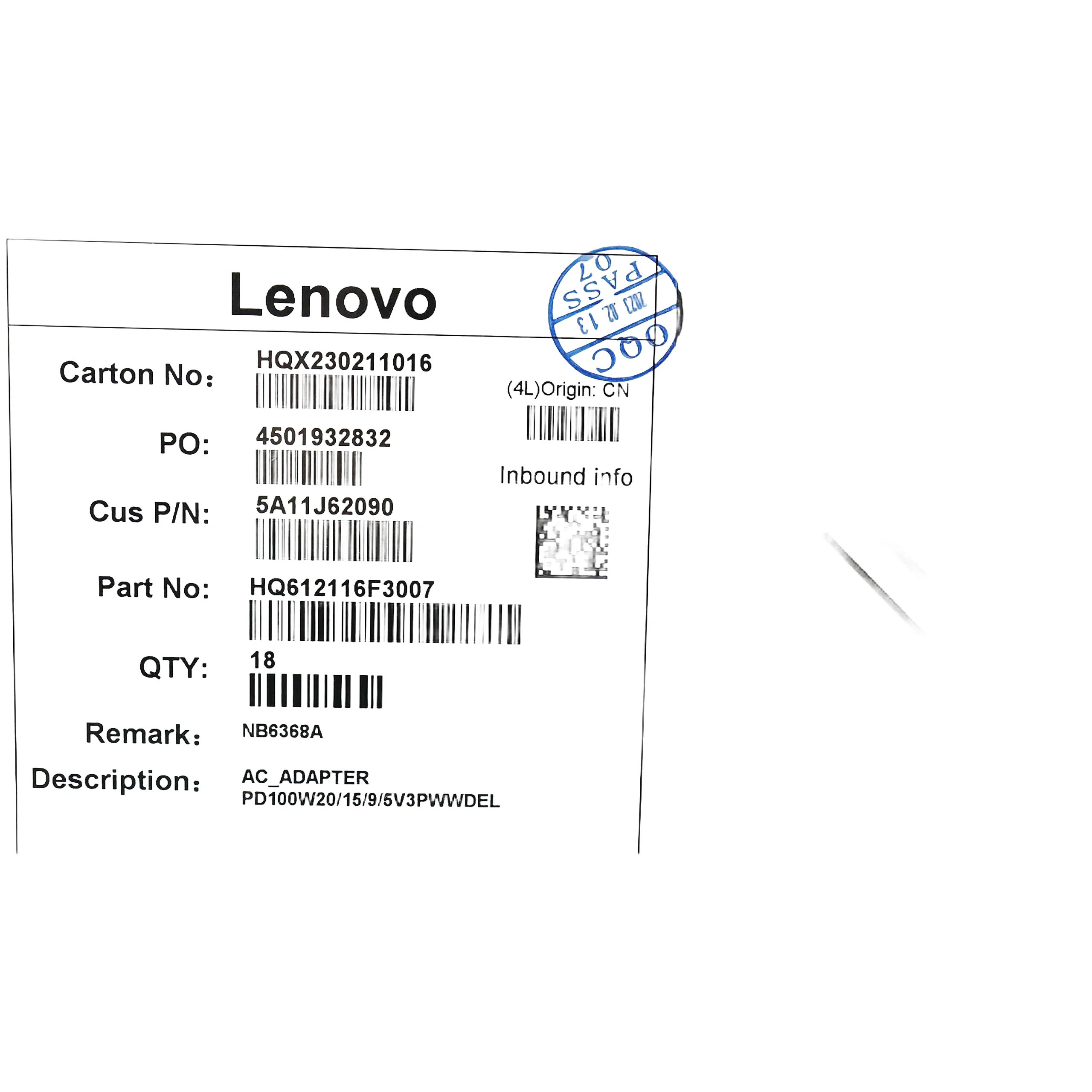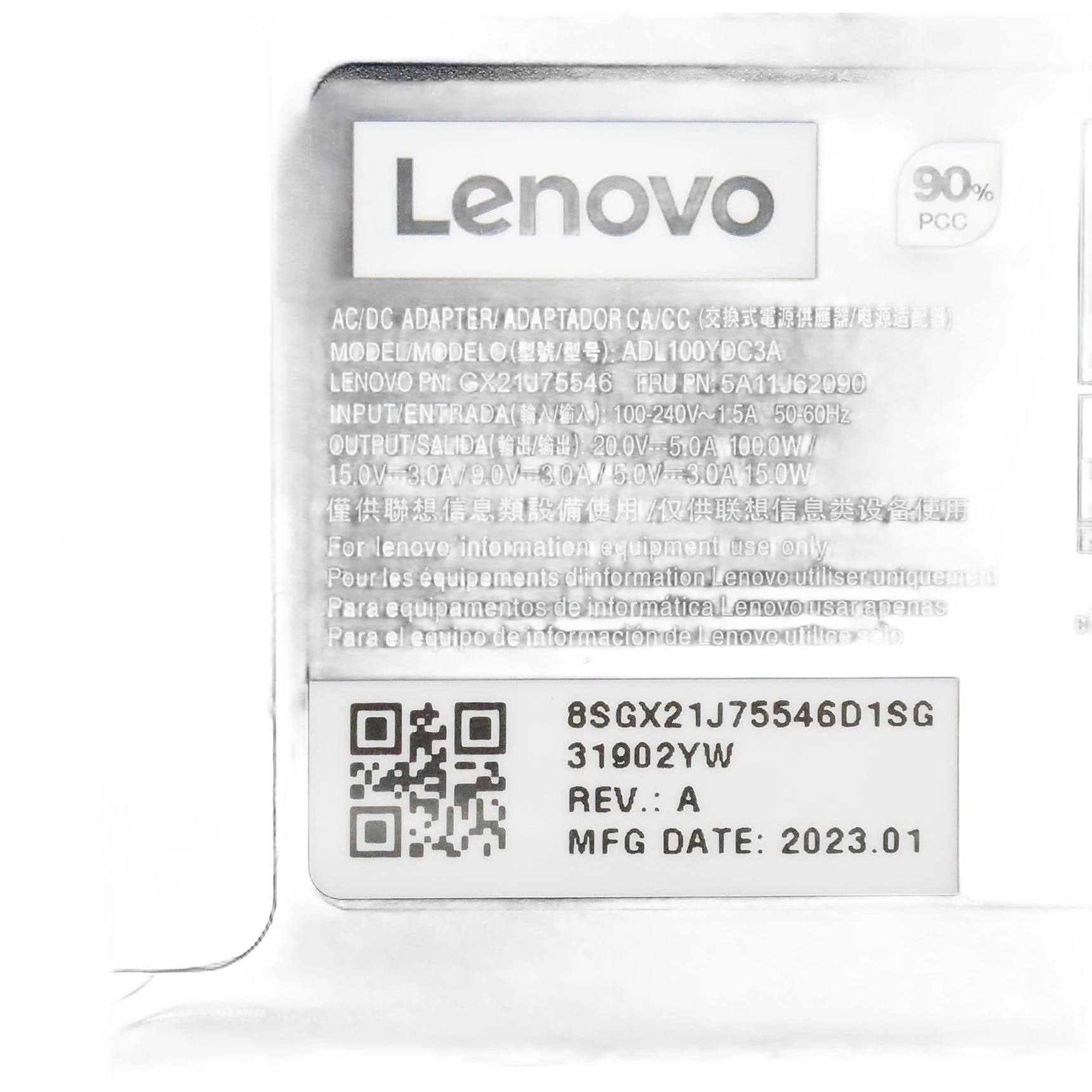 Especificaciones Cargador Lenovo 100W USB-C.