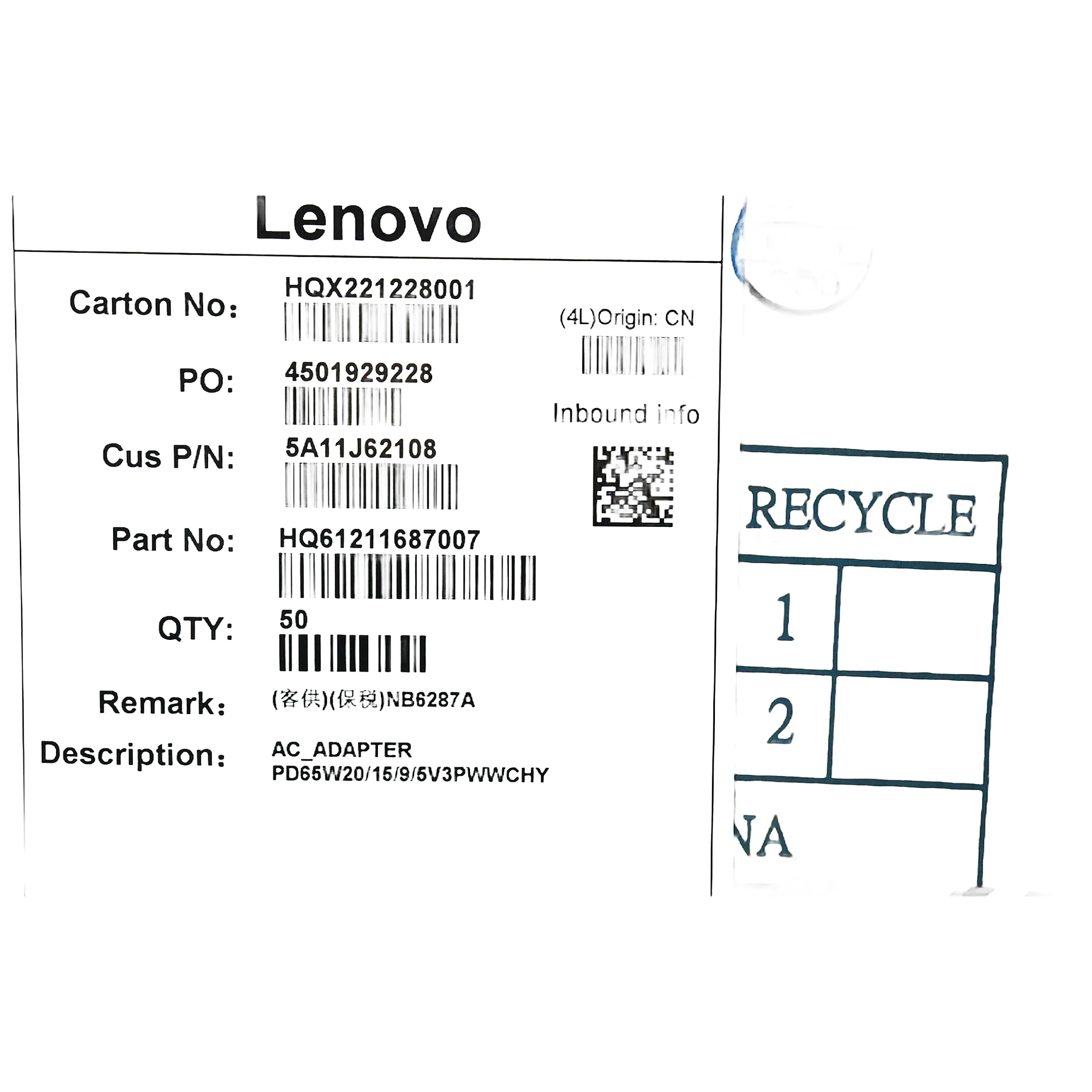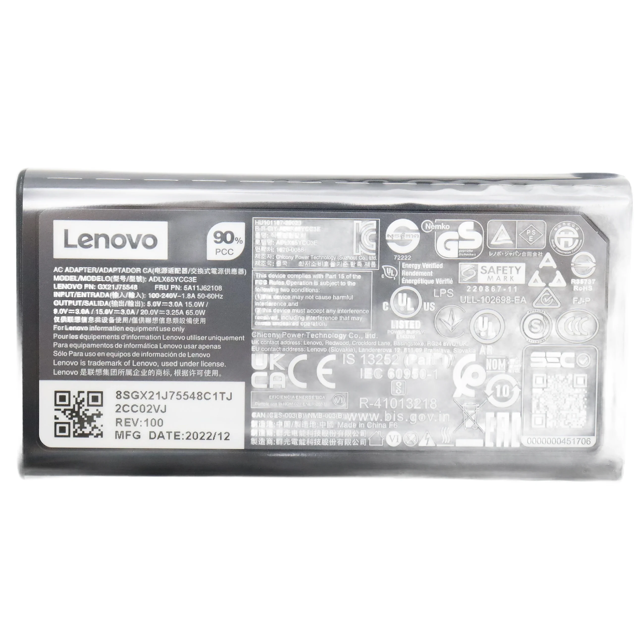 Especificaciones Cargador Lenovo 65W USB-C.