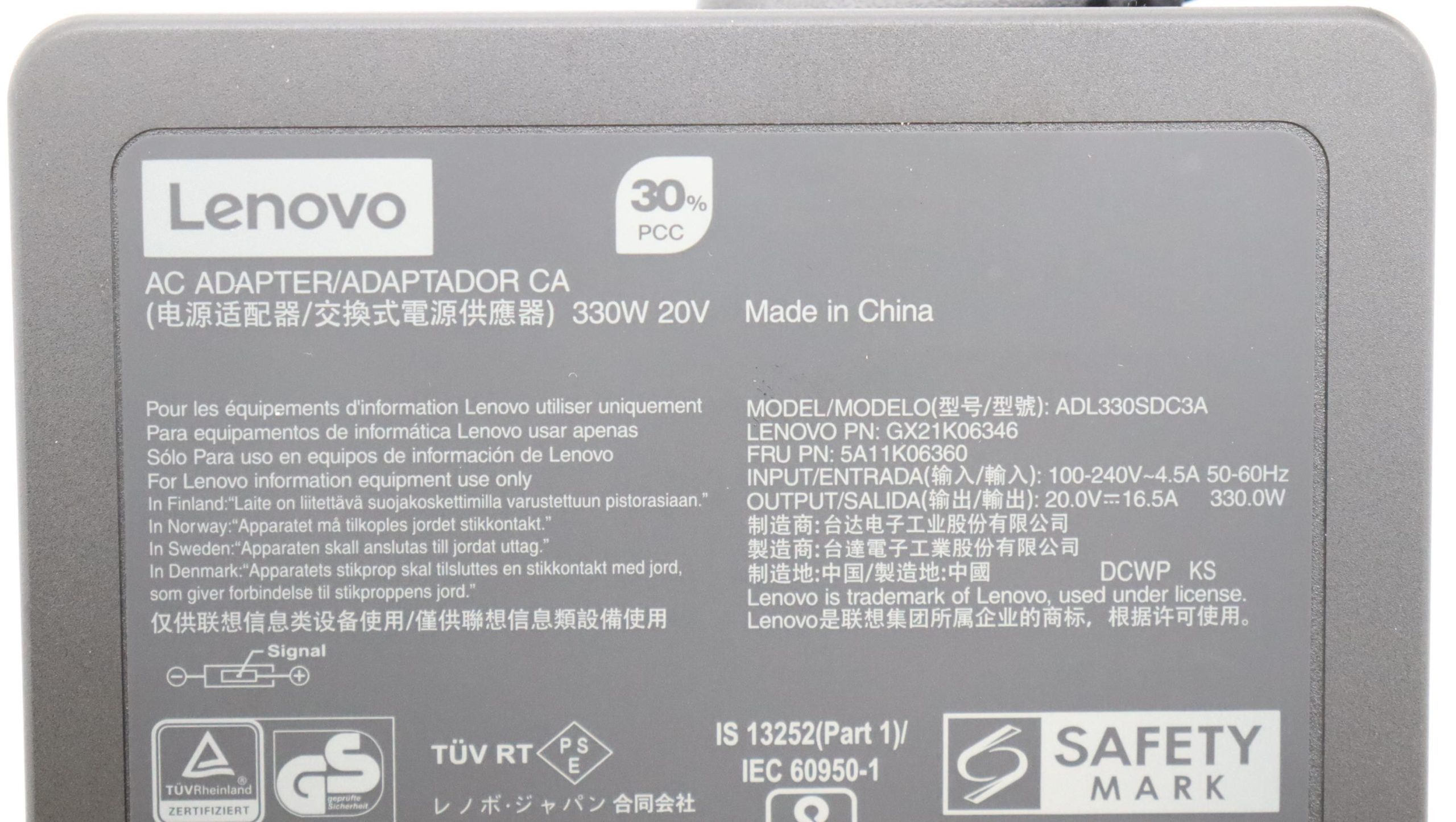 Especificaciones Cargador Lenovo 330W Square.