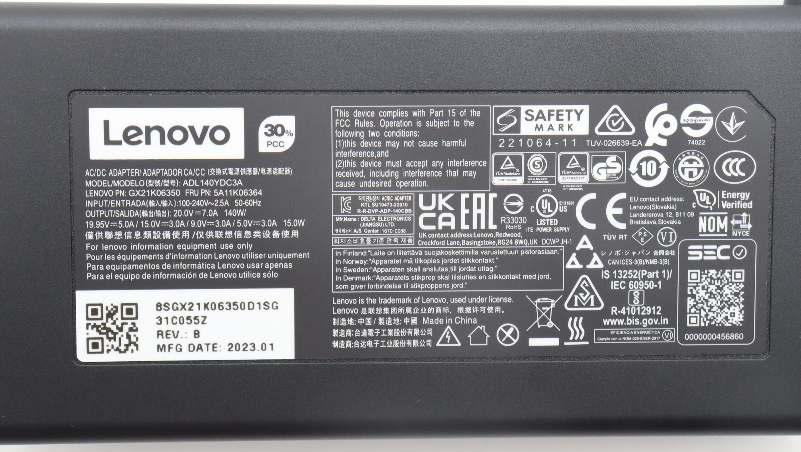 Especificaciones Cargador Lenovo 140W USB-C.