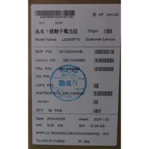 Especificaciones Batería Original Lenovo L23M3P70 46.5Wh 4112mAh.