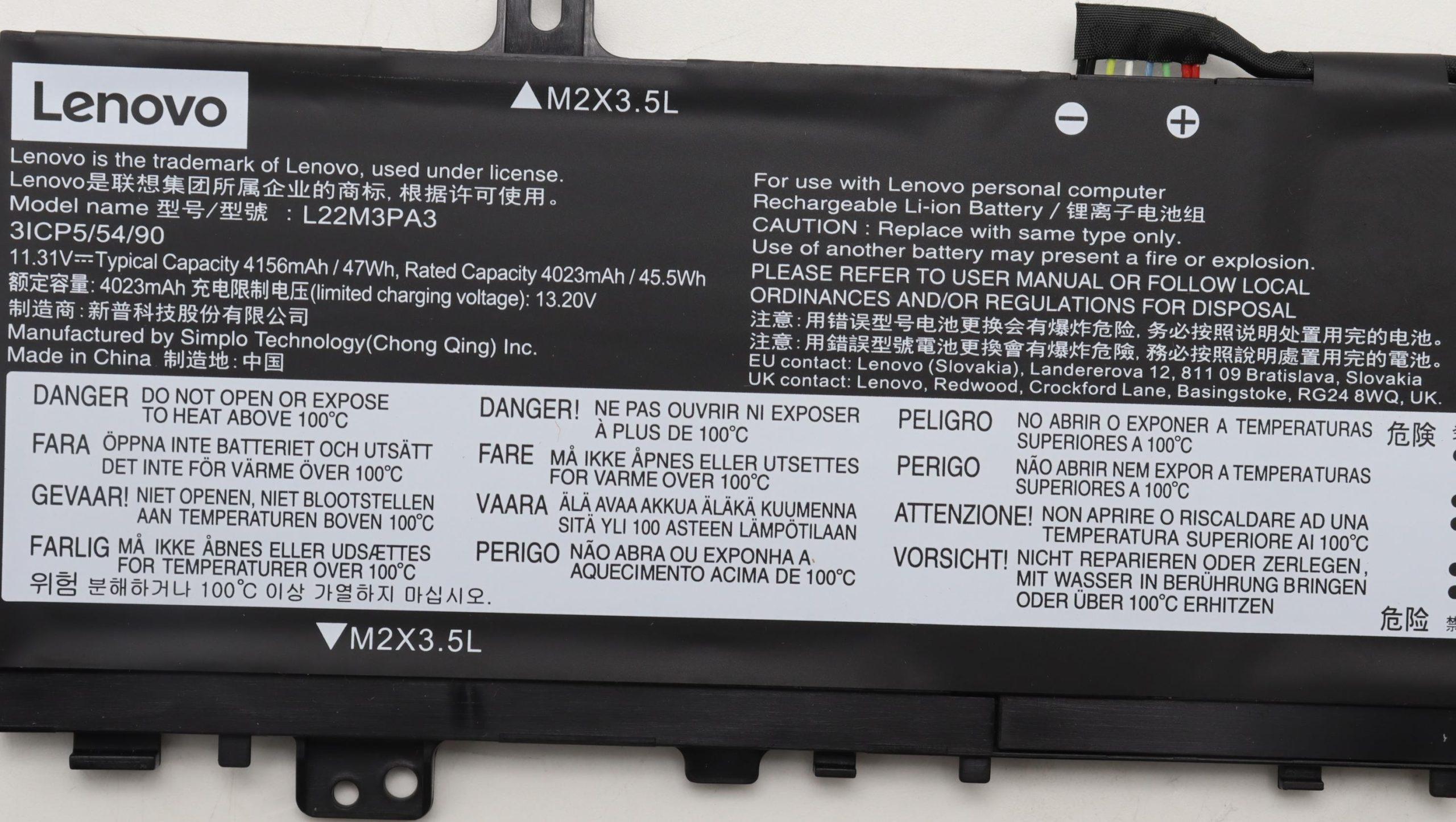 Especificaciones Batería Original Lenovo L22M3PA3 47Wh 4156mAh.