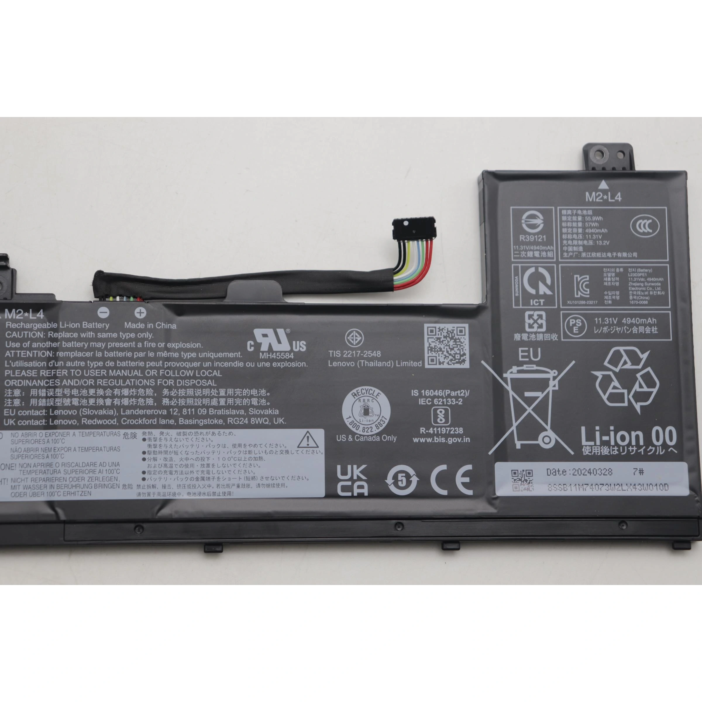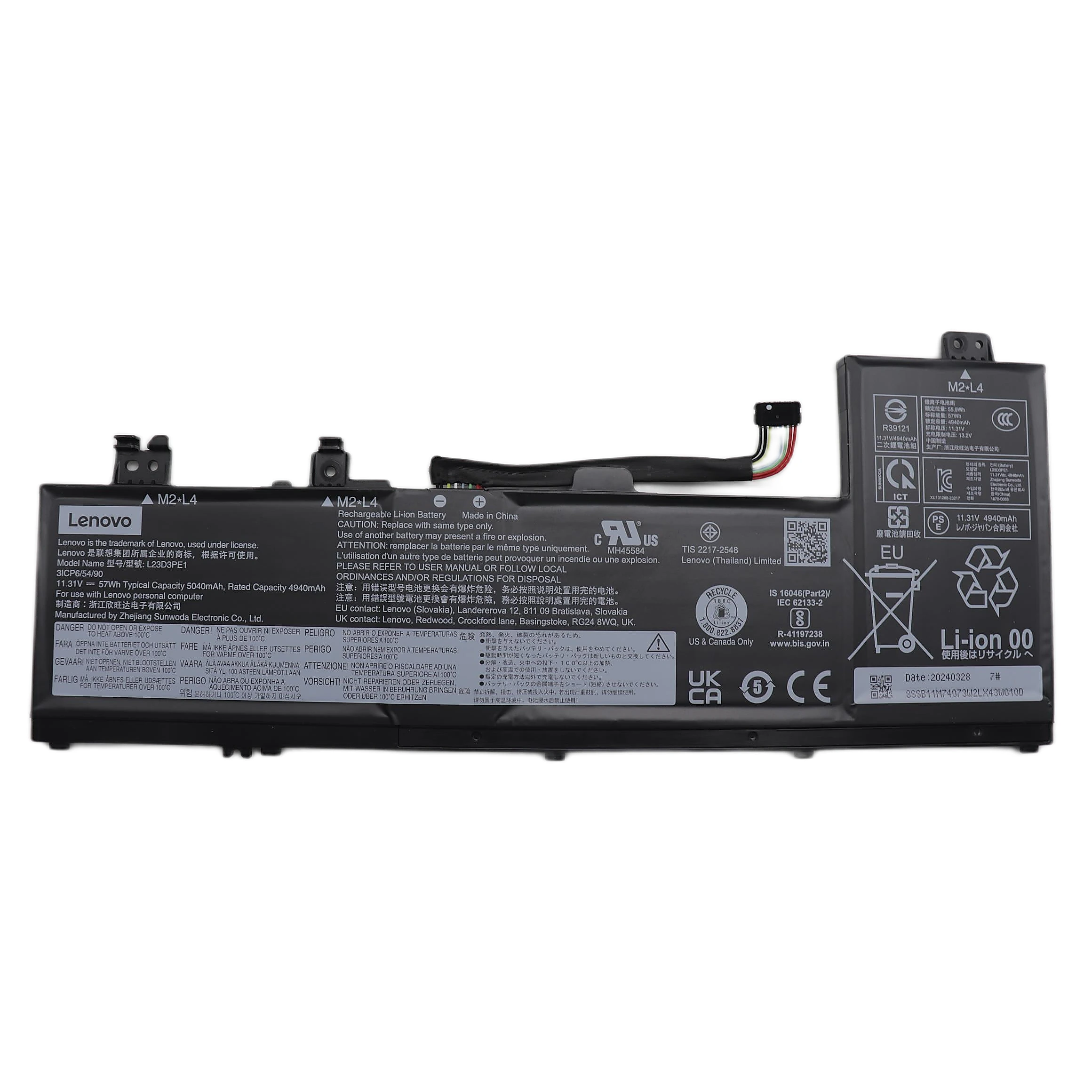 Especificaciones Batería Original Lenovo L23D3PE1 57Wh 5040mAh.