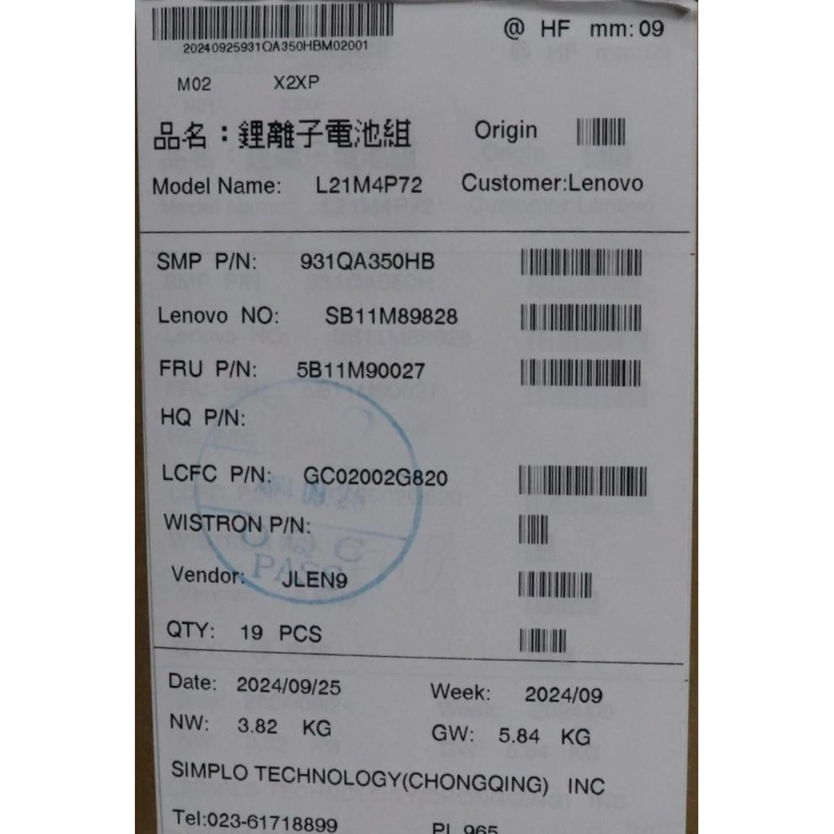Especificaciones Batería Original Lenovo L21M4P72 52.5Wh 3392mAh.