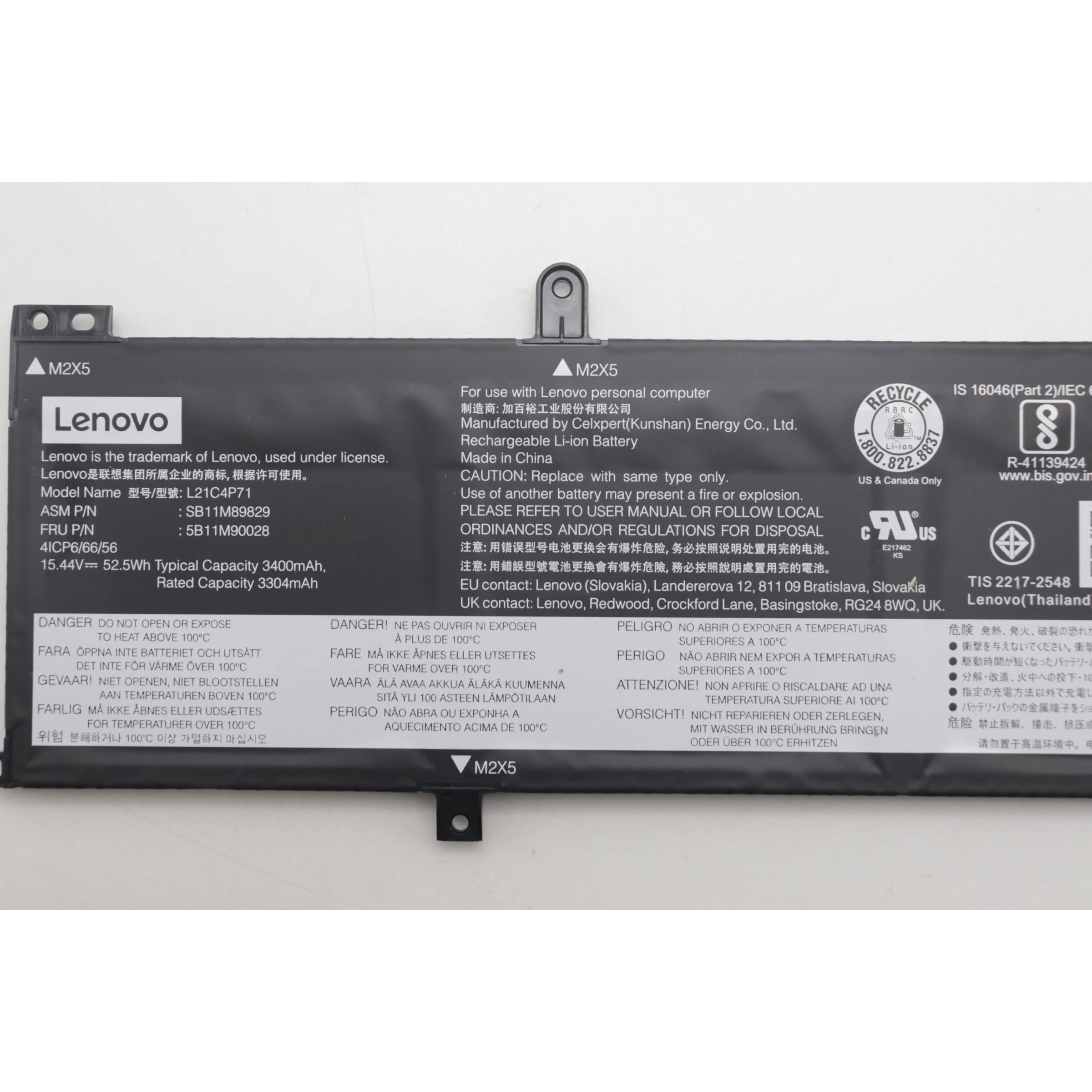 Especificaciones Batería Original Lenovo L21C4P71 52.5Wh 3400mAh.