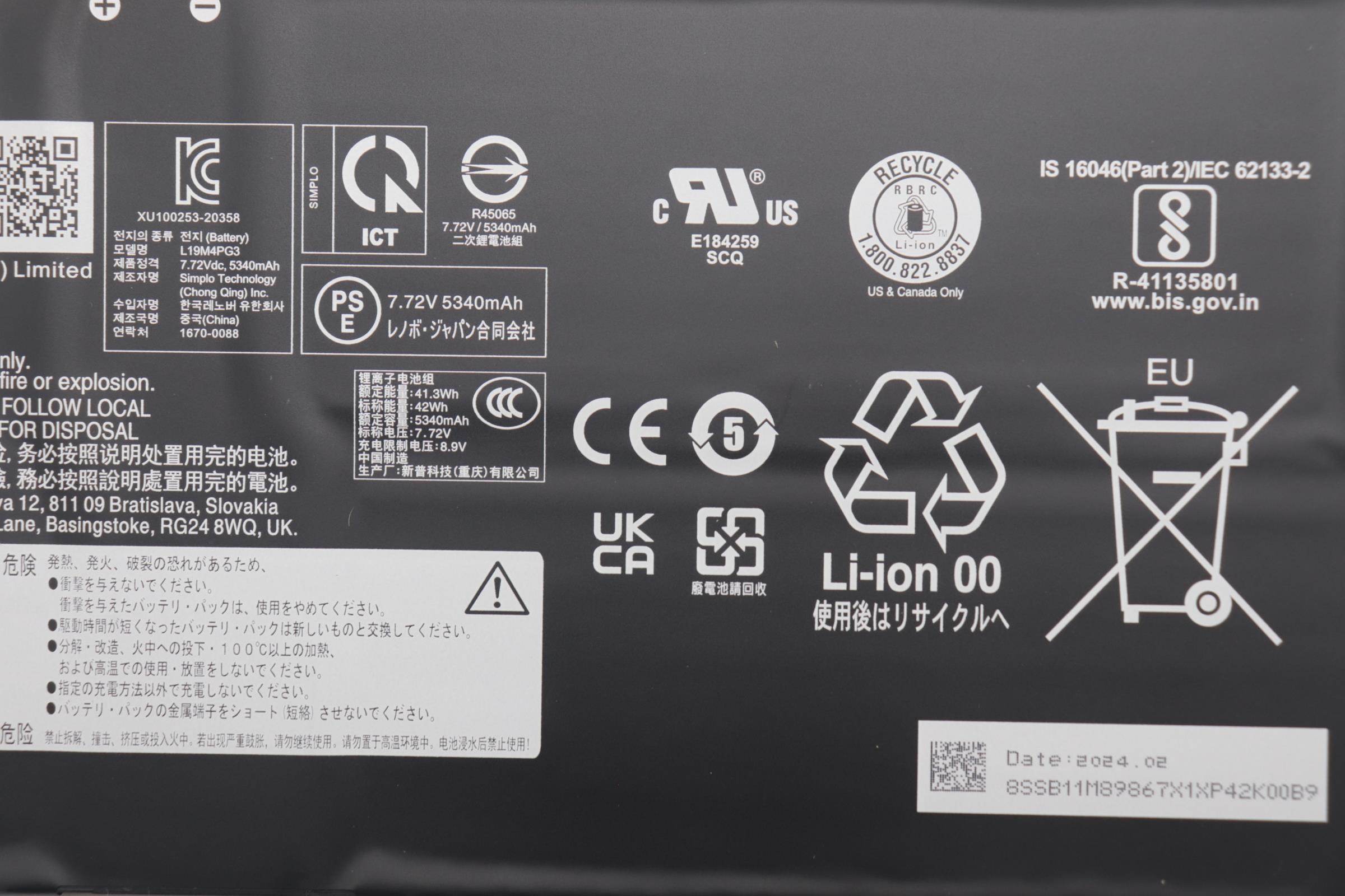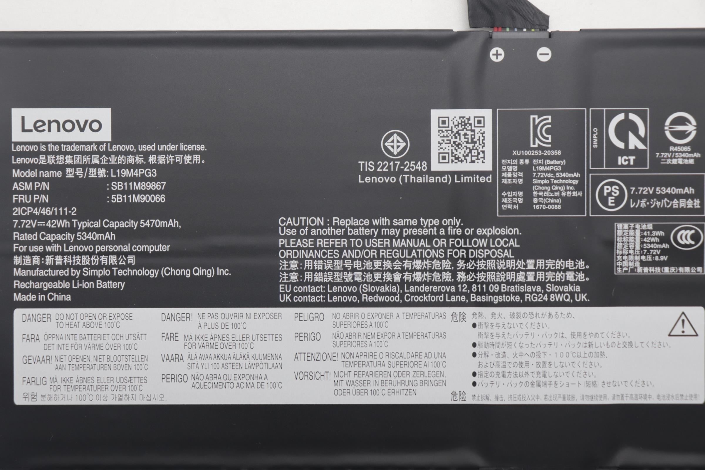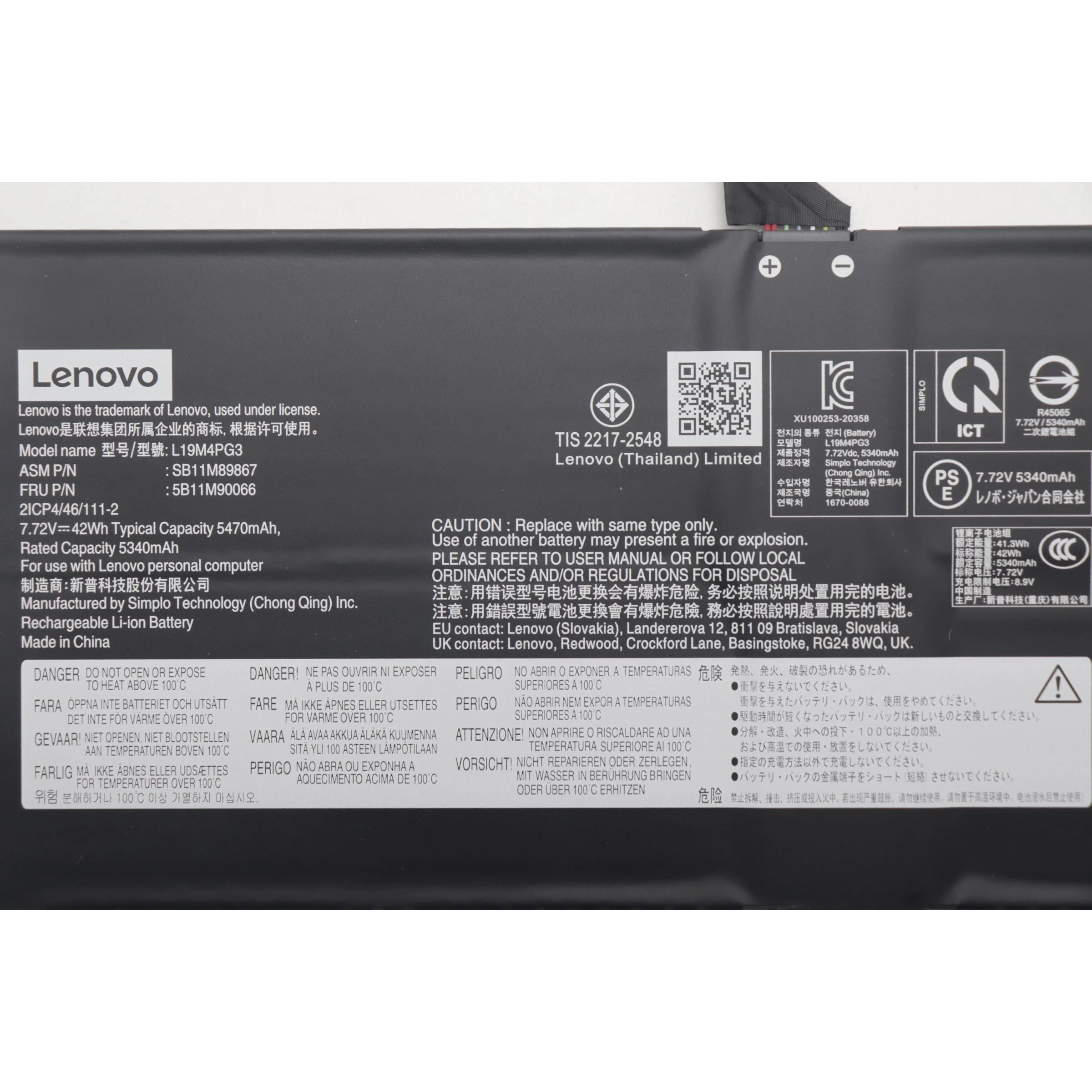 Especificaciones Batería Original Lenovo L19M4PG3 42Wh 5470mAh.