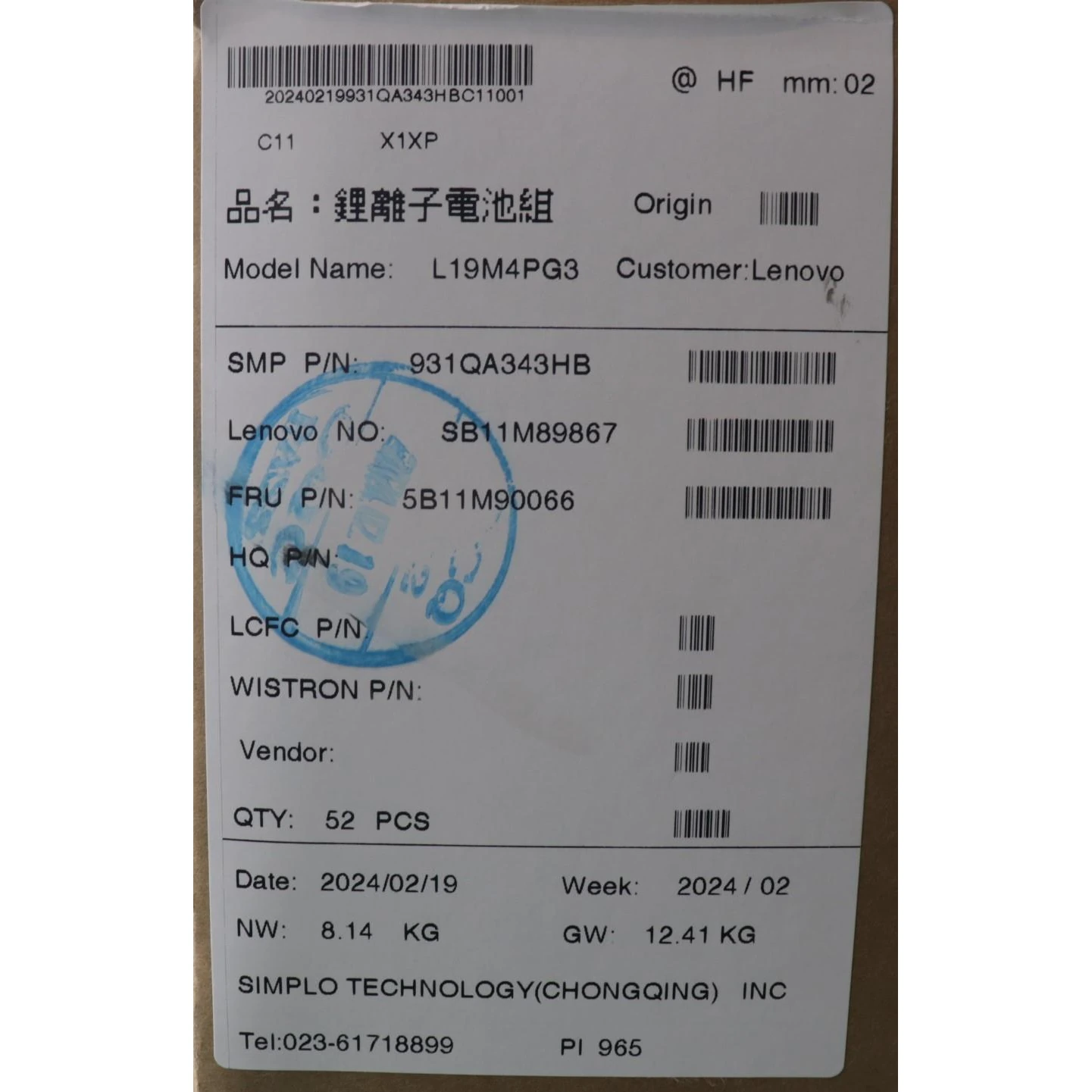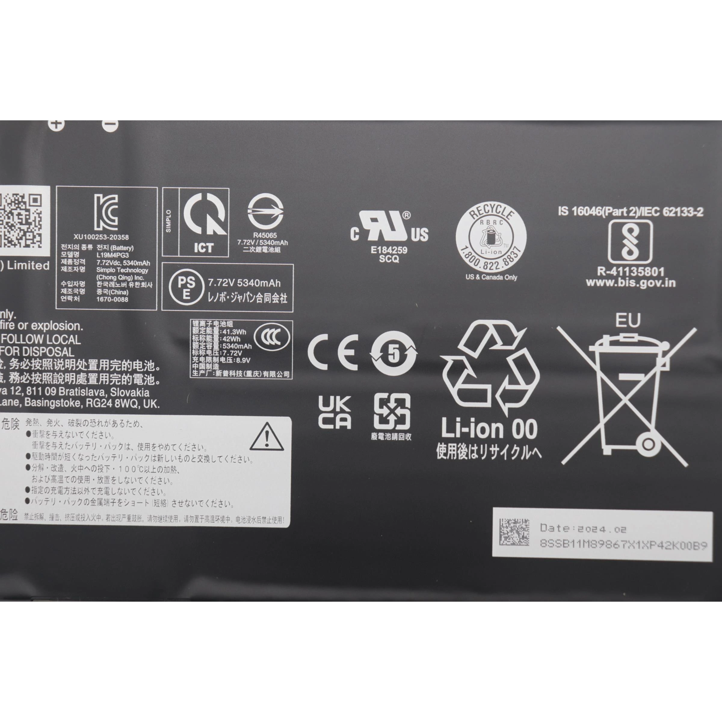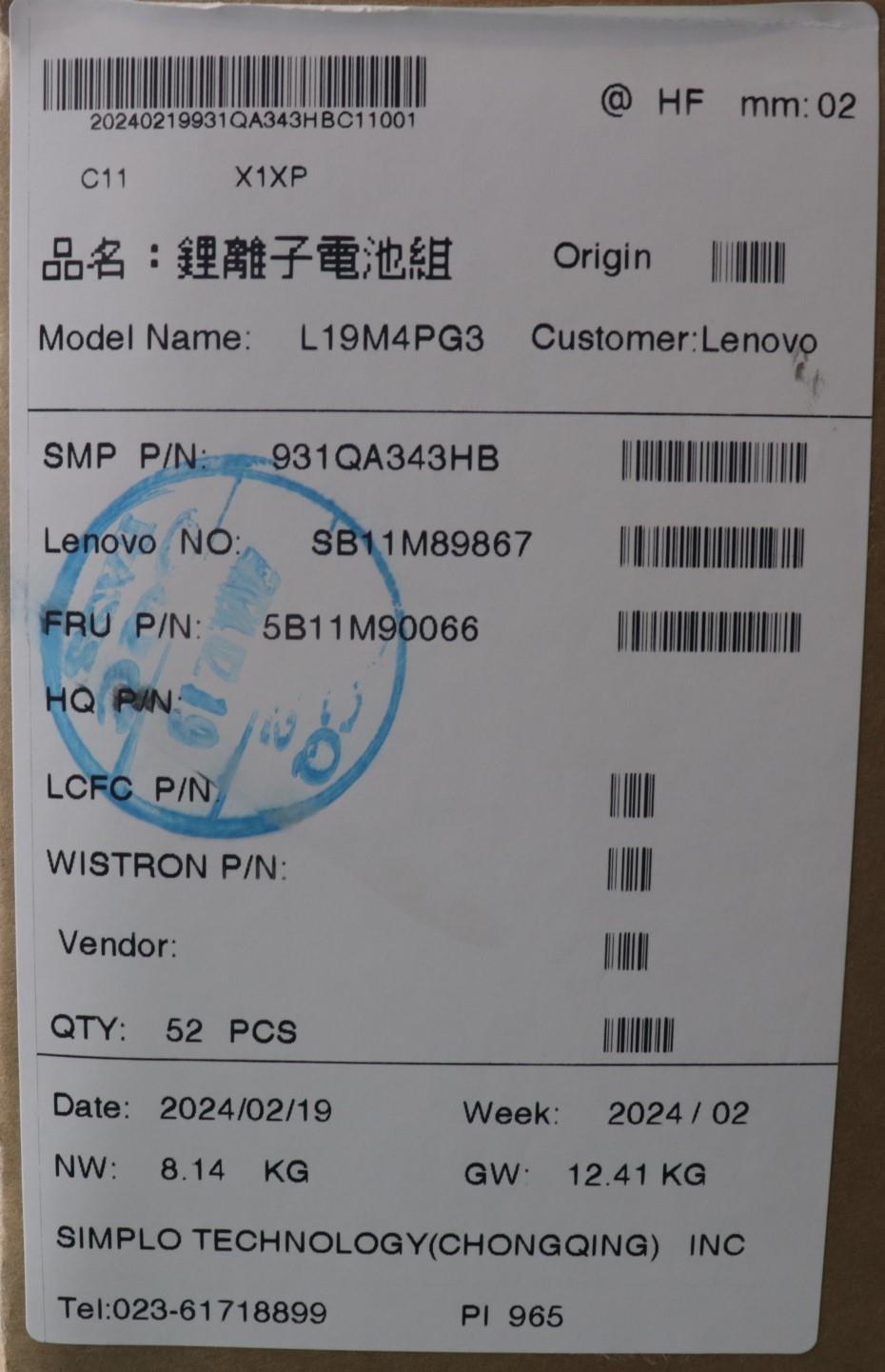 Especificaciones Batería Original Lenovo L19M4PG3 42Wh 5470mAh.