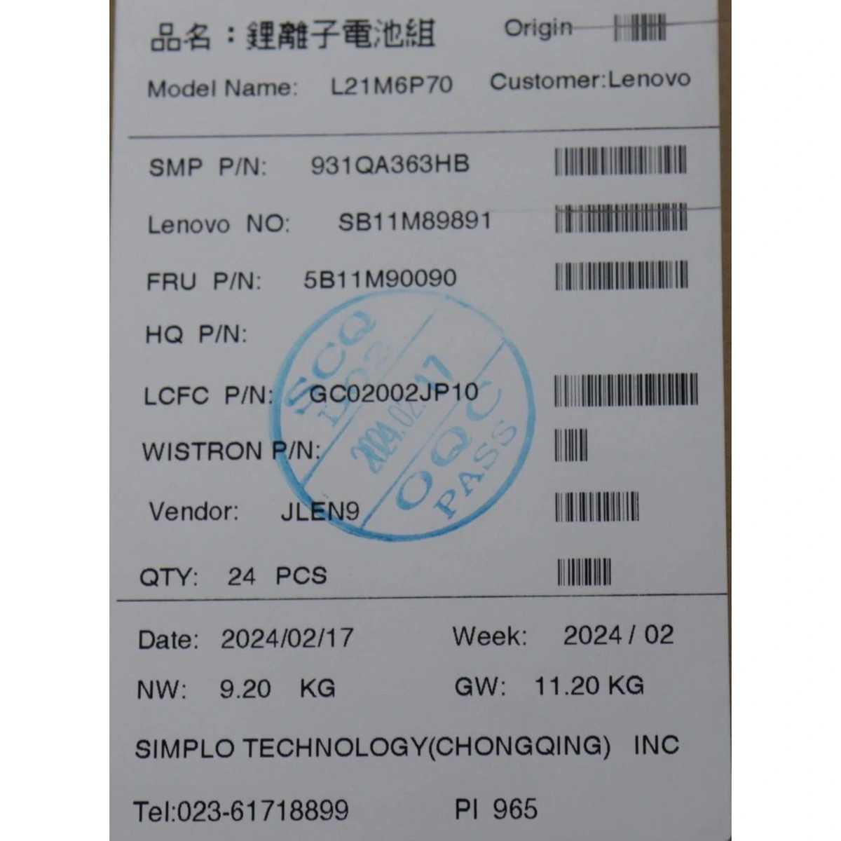 Especificaciones Batería Original Lenovo L21M6P70 94Wh 8120mAh.