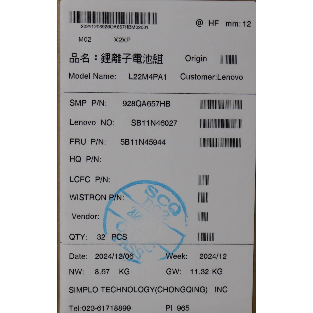 Especificaciones Batería Original Lenovo L22M4PA1 71Wh 4623mAh.
