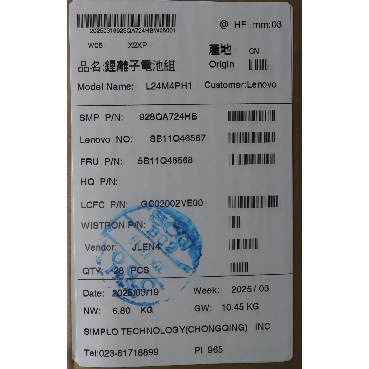 Especificaciones Batería Original Lenovo L24M4PH1 88Wh 5643mAh.