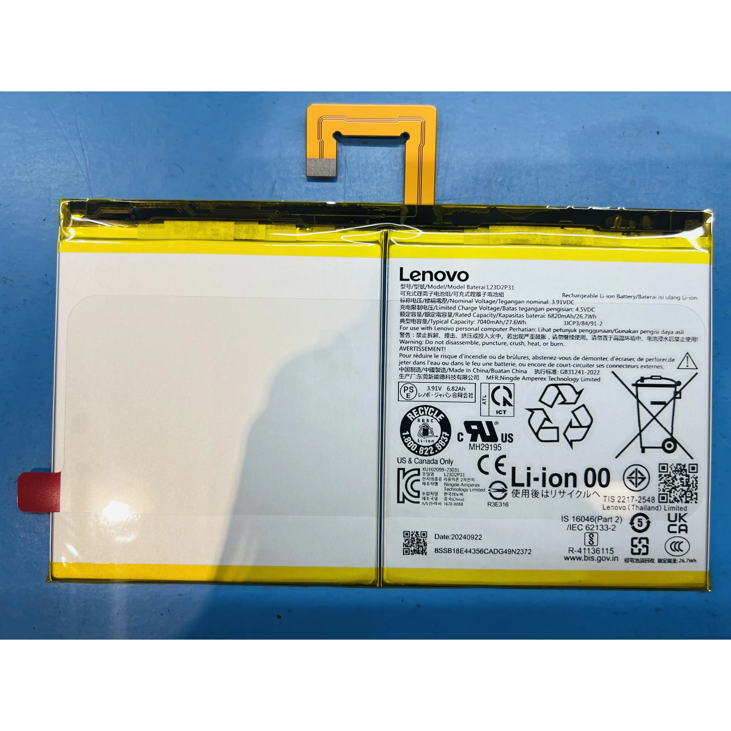 Especificaciones Batería Original Lenovo L23DD2P31 26.7Wh 6820mAh.